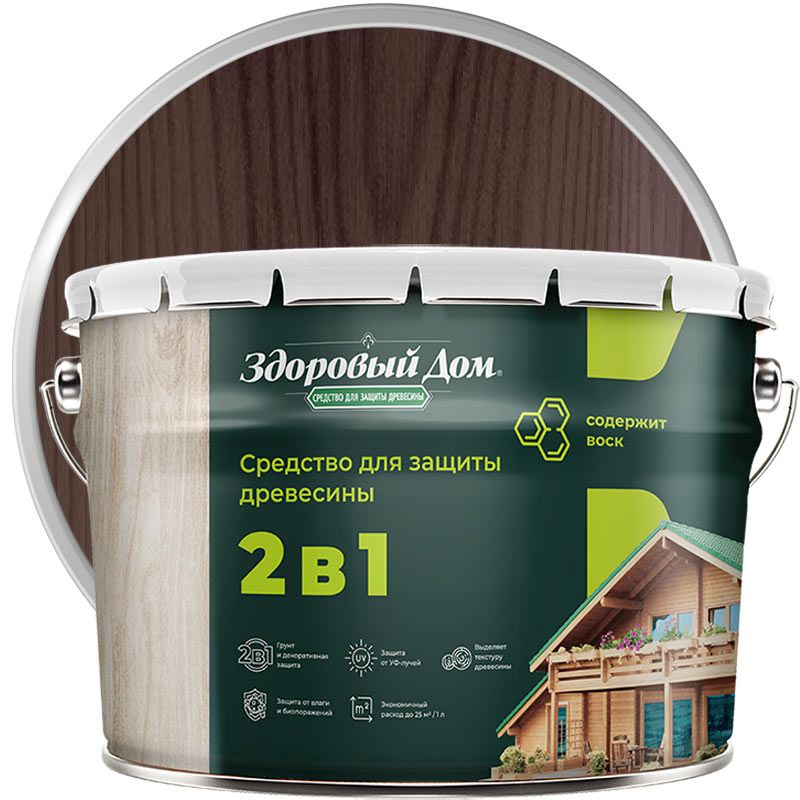 Антисептик лессирующий декоративный для дерева ЗДОРОВЫЙ ДОМ 2В1 Палисандр 10 л
