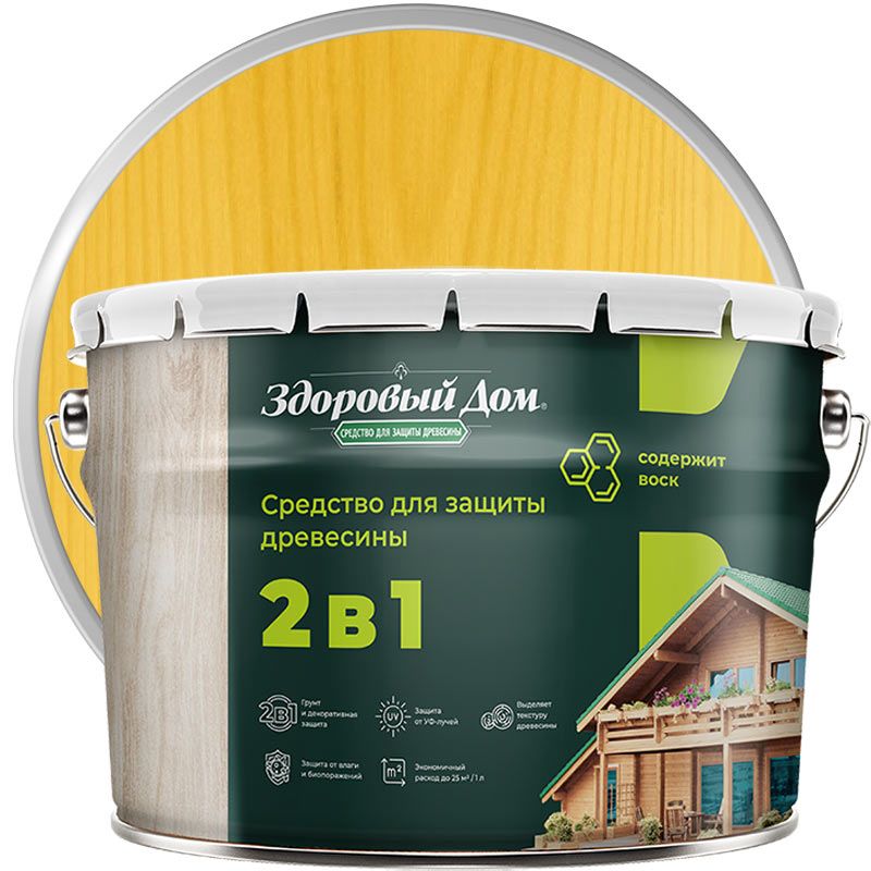 Антисептик лессирующий декоративный для дерева ЗДОРОВЫЙ ДОМ 2В1 Сосна 10 л