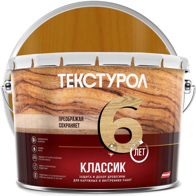 «ТЕКСТУРОЛ Классик» – лессирующий антисептик для дерева на основе алкидных смол и пигментов. Надёжно защищает деревянное основание от атмосферных воздействий и влаги. Покрытие паропроницаемое. Пигменты защищают дерево от ультрафиолета и выгорания. Льняное масло в составе делает покрытие эластичным и позволяет обрабатывать дерево, ранее покрытое олифой. Есть готовые цвета, но можно и заколеровать средство в желаемый цвет. Обрабатываются деревянные фасады, строения, заборы, двери, окна и пр. Средство может применяться для тонирования паркетного пола, под нанесение лака.