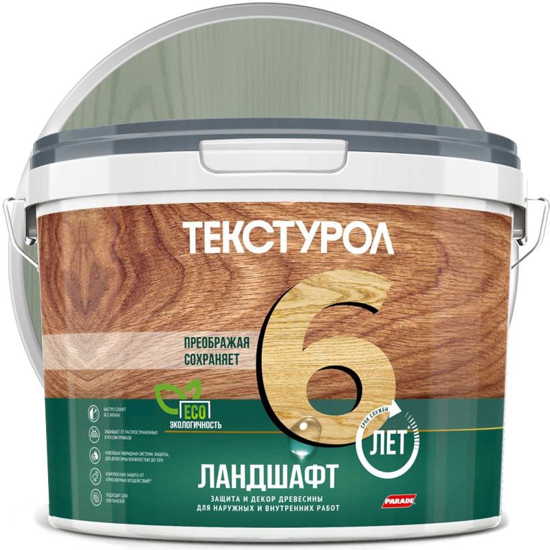 Антисептик полукроющий декоративный для дерева ТЕКСТУРОЛ Ландшафт Серо-зеленый 9 л
