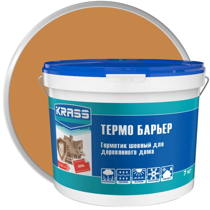 KRASS Термо Барьер – герметик для герметизации швов сруба, как с внутренней, так и с наружной стороны. При помощи герметика заделывают торцевые и боковые трещины на брусе и бревнах. Также состав используется для герметизации обходов оконных и дверных рам, деревянных наличников, плинтусов. Если соблюдать технологию «теплый шов», то герметик предотвратит потери тепла на 70 %, а прослужит 20 лет. Герметик защитит от влаги и сквозняков, сохранит тепло в доме.