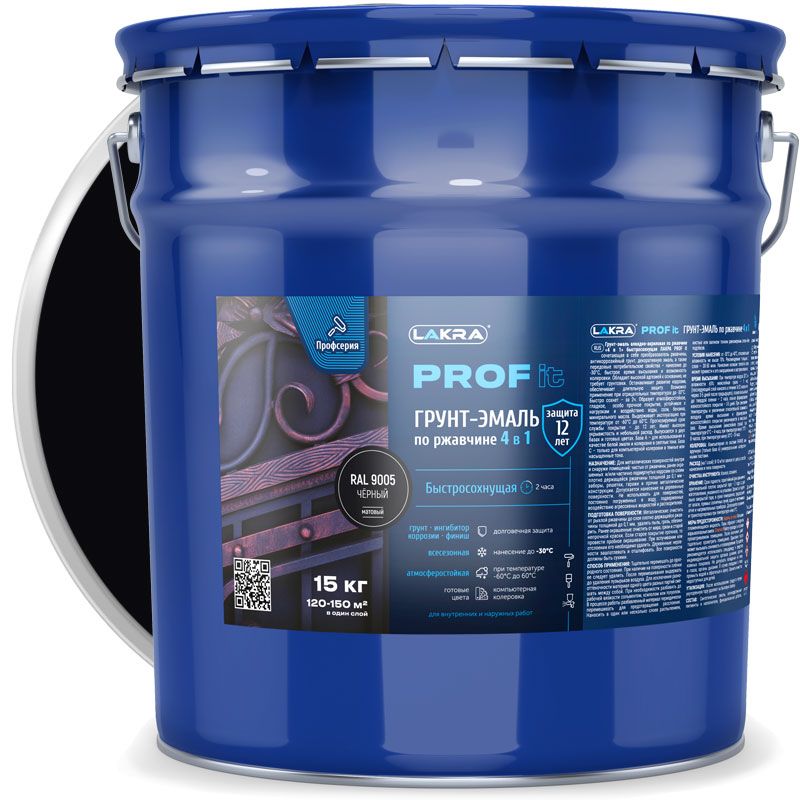 Грунт-эмаль по ржавчине всесезонная ЛАКРА PROF IT 4 в 1 Черный RAL 9005 15 кг