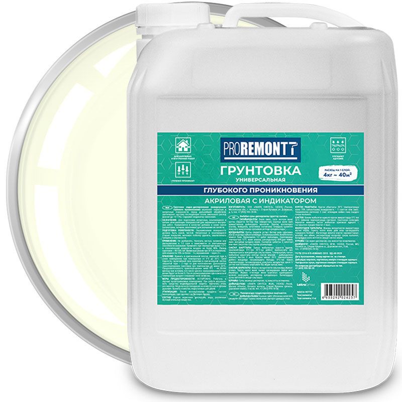 Грунтовка УНИВЕРСАЛЬНАЯ PROREMONTT - акриловый состав глубокого проникновения с целью укрепления основания и повышения адгезии.