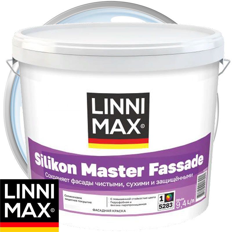 ЛИННИМАКС СИЛИКОН МАСТЕР ФАССАДЕ – силиконовое фасадное покрытие. Краска стойкая к выцветанию от ультрафиолета и щелочности. Оптимальная краска для систем СФТК, защиты фасадов и цоколей. Фасад остается сухим. Краска включает биоциды и защищает фасад от грибка и водорослей. Фасад приобретает свойство естественной защиты от загрязнения. За счет высокой паропроницаемости может использоваться при реставрационных работах. Краска абсолютно безвредная.