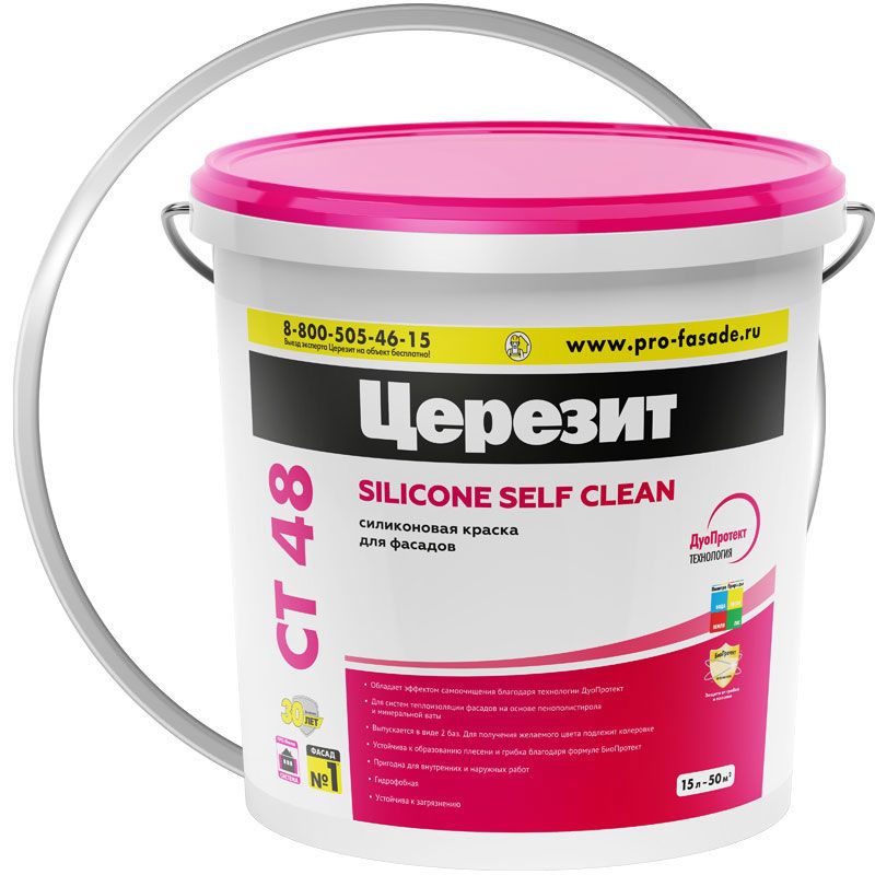 Церезит CT 48 - водно-дисперсионная Краска для фасадов на силиконовой основе. Окрашиваются фасады, цоколи, СФТК.