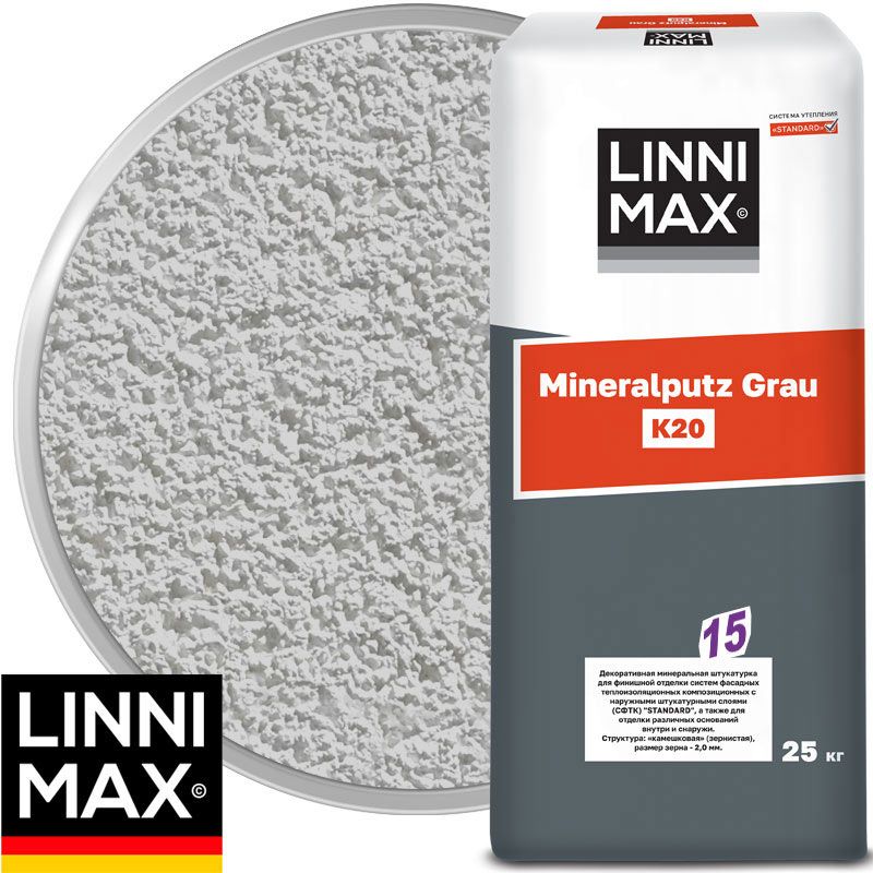 Минеральная декоративная штукатурка LINNIMAX Mineralputz Grau K20 Серая Камешковая 2 мм 25 кг