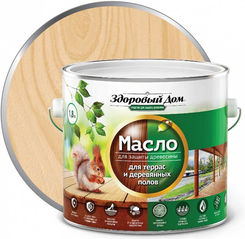 Масло для защиты террас и деревянных полов ЗДОРОВЫЙ ДОМ Бесцветное база 1,8 л