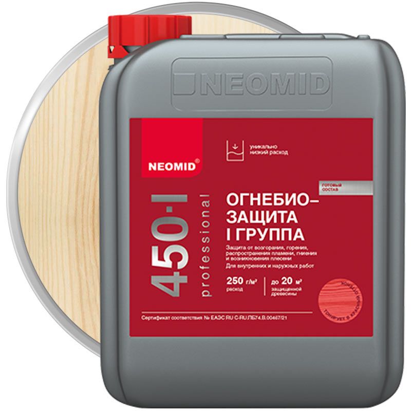 Огнебиозащита для древесины NEOMID 450-1 I и II группа огнезащитной эффективности Бесцветная 10 кг