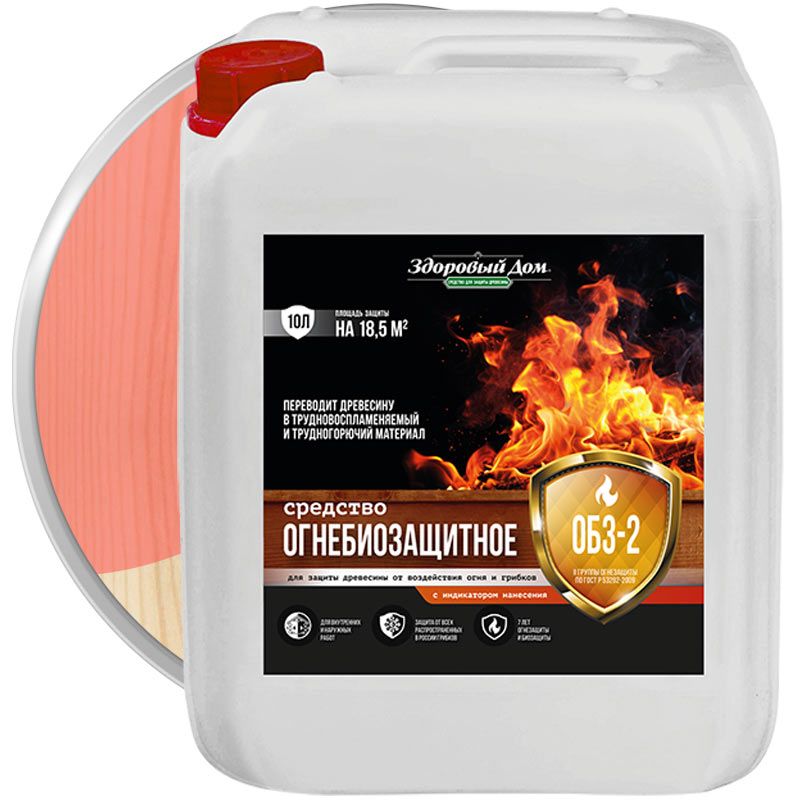 Огнебиозащитное средство ЗДОРОВЫЙ ДОМ ОБЗ-2 с индикатором II группа огнезащитной эффективности Красное 10 л