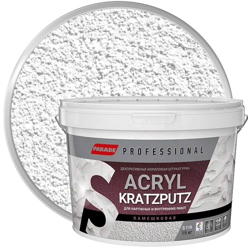 Штукатурка декоративная акриловая PARADE Professional ACRYL KRATZPUTZ S110 Белая база А Камешковая 2 мм 15 кг