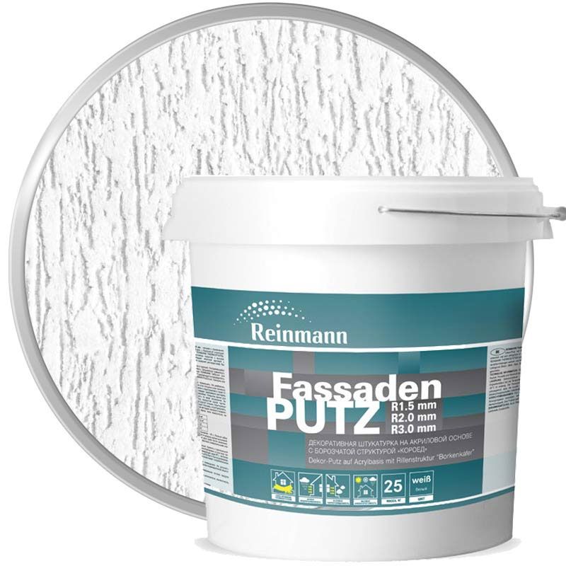 Штукатурка декоративная акриловая REINMANN FassadenPutz R30 Белая база Короед 3 мм 25 кг