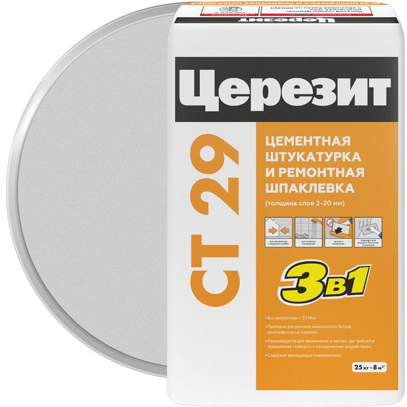 Штукатурка цементная высокопрочная ЦЕРЕЗИТ CT 29 Ремонт 25 кг