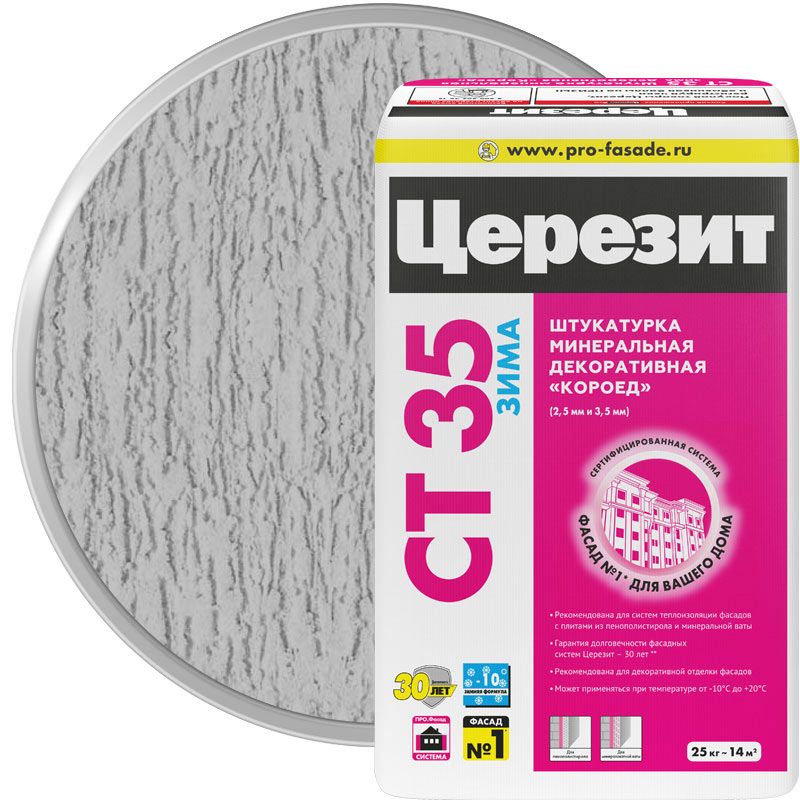 Минеральная декоративная штукатурка ЦЕРЕЗИТ CT 35 Серая Короед 2,5 мм Зимняя 25 кг