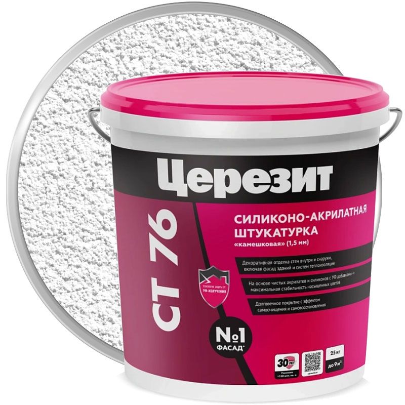 Церезит CT 76 - силиконовая штукатурка с высокой эластичностью, прочностью, стойкостью и яркостью цвета, со свойством самоочищения и самовосстановления.