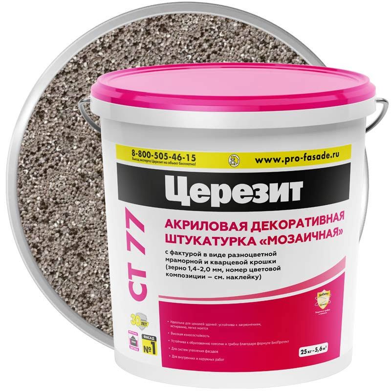 Церезит CT 77 – мозаичная штукатурка для фасадов и цоколей. Образует красивую стекловидную разноцветную прочную поверхность.